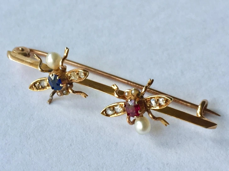 “Went to a house clearance sale and found this pin marked as ’costume jewelry’ for $5. Took it to a jeweler and they confirmed it’s unmarked gold with diamonds and sapphires.”