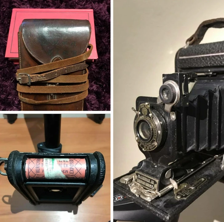 “Found a camera in a thrift store that belonged to a soldier in WW1. It has undeveloped Verichrome film in the back.”