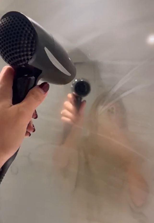 Use a hair dryer to clear a fogged bathroom mirror.