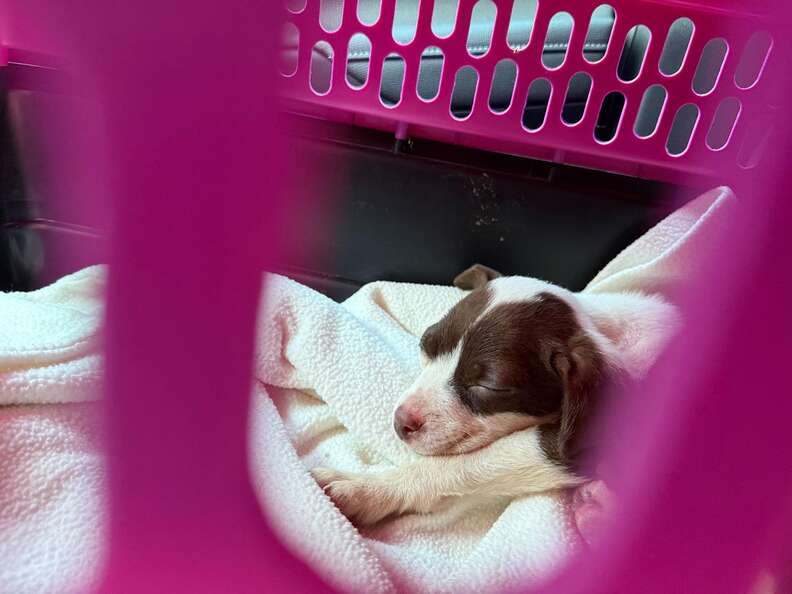 “The temperature had dropped significantly, and there wasn’t another soul around—canine or human,” Haack explained. “This hero gently lifted the puppy and placed him safely in a box. Remembering that his coworker volunteered with a dog rescue organization, he brought the pup to work and immediately reached out for emergency help.”