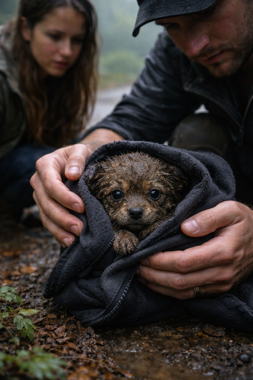 It was small, soaked, shivering, and so badly covered in mud that it was impossible to tell much about it. The little creature barely moved as they approached, lifting its head just enough to show it was still alive.